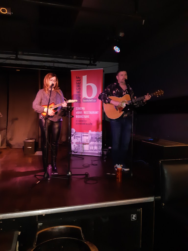 Format: The author’s book and her reading were the focus of the evening, but not the only entertainment. Two other authors with our press did very brief readings, and there were live musicians. Between the readings by the ‘warm-up act’ readers, and the author, the duo played two songs specific to the era and location in which her book is set, taking those of us old enough to remember (most of us) to Montreal in the late 60s.