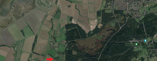 Wood Farm (the red arrow in the map below) is isolated, even by Norfolk standards. At the end of a long private track which itself runs off the public lane that circles the hamlet of Wolferton, it is five kilometers away from Sandringham House itself. Overlooking flat farmland out to The Wash, and on private land without footpaths, it would have been indeed a quiet, private life. Although, in the years John lived there, the train from King’s Lynn to Hunstanton ran very close to Wood Farm, with a station at Wolferton for the royal family. Perhaps it provided some excitement.
