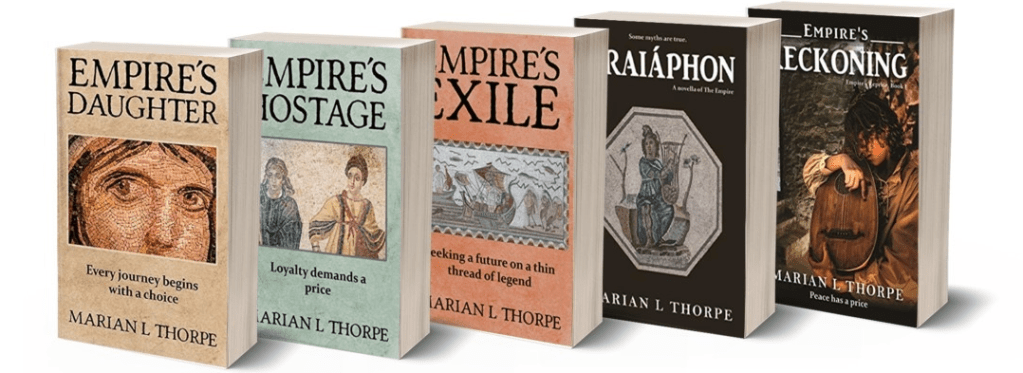 In the work-in-progress, Empire’s Heir, four of my main characters have been together for nearly twenty years, through war and its aftermath and the creation of a new peace. But life is not static, and as challenges both political and personal are changing their lives again, whether they can find a new balance will be, once more, a question of love.
