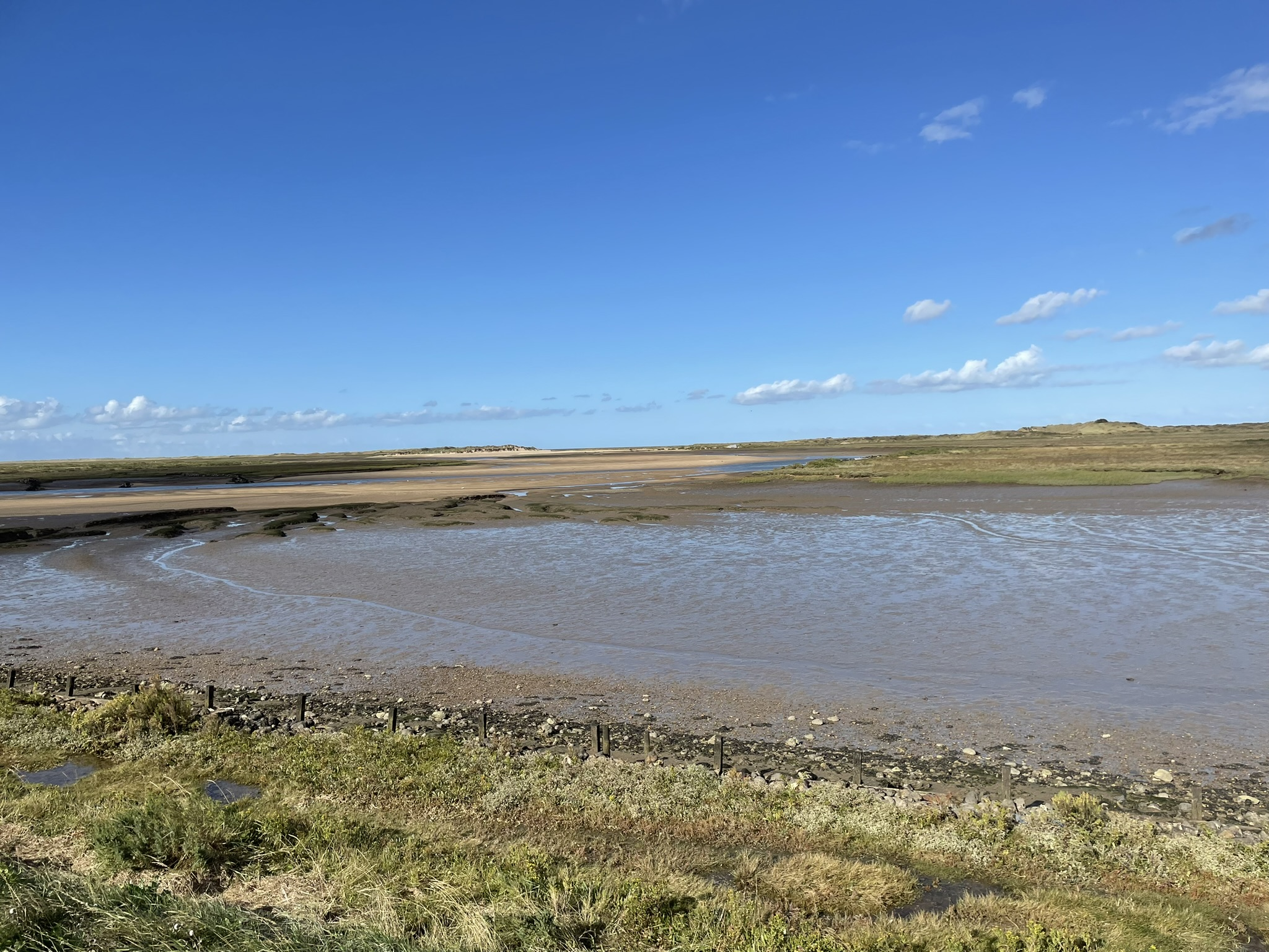 But also, of course, the birds, and the long walks, and in the four weeks we’ve been here we’ve had four days of serious rain. Most have been sunny. We caught the last of the summer birds, chiff-chaffs still singing, and the first of the winter migrants, pink-footed geese and redwings, as well as two birds new for the UK for us, yellow-browed warbler and cattle egret. The saltmarshes are washed pink with sea lavender, the hedges are bright with rose hips and hawthorn fruit and blackberries, and filled with red admiral and fritillary and cabbage white butterflies. Deer – roe and muntjac, fallow and Chinese water – browse field edges and park, and on the mud of the marshes probe godwit and golden plover, redshank and curlew.